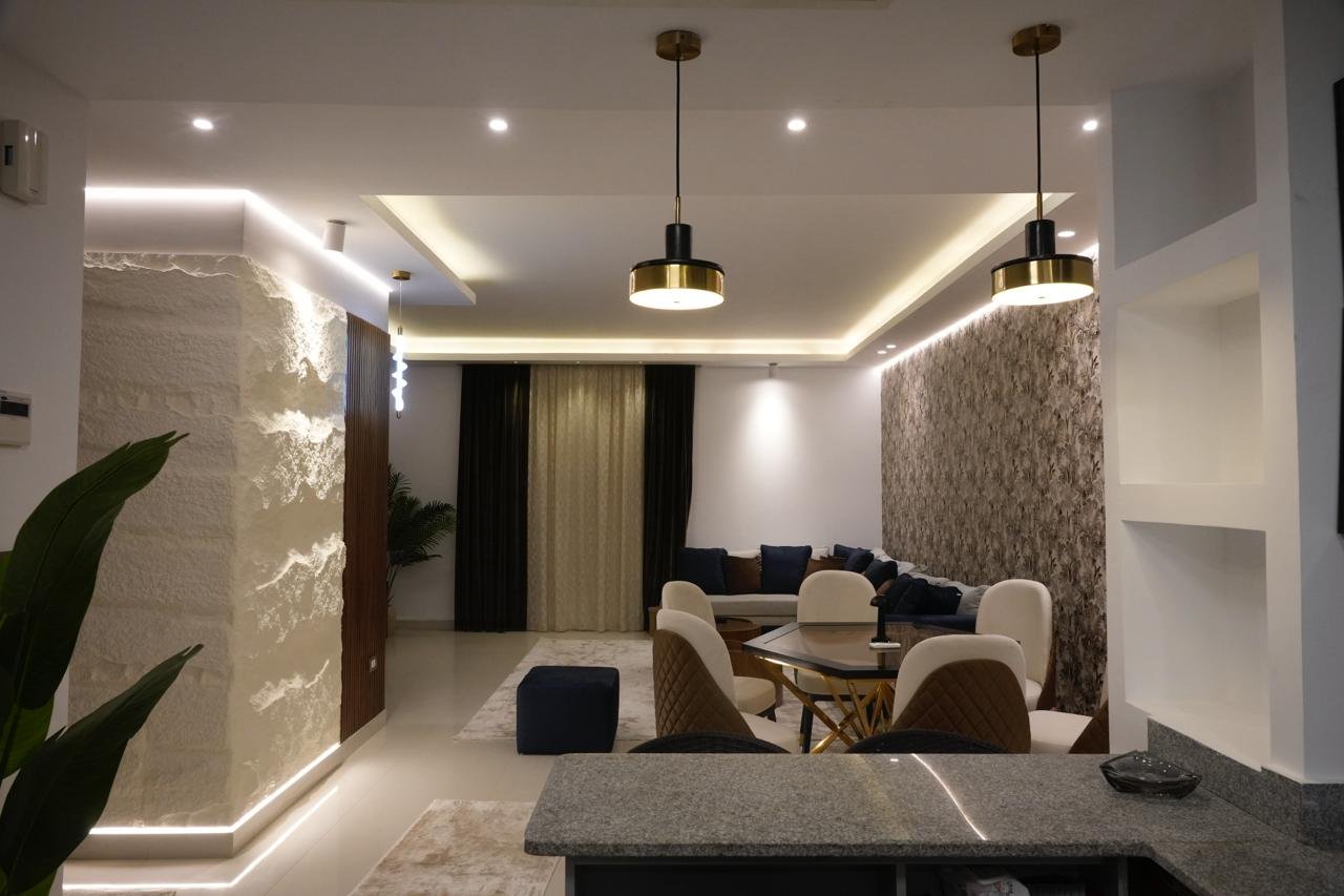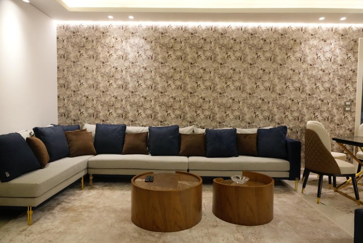 Upon entering the apartment, you are welcomed by a spacious two-piece reception area. This layout offers flexibility in furniture arrangement, whether you prefer a cozy family living area or a more formal sitting space for guests. The generous reception allows for a separate dining corner without compromising the openness of the space, making it ideal for modern living.