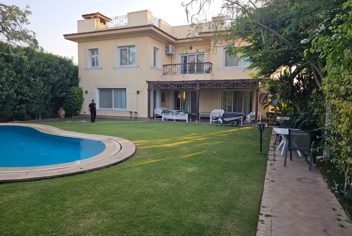 This standalone villa is located in Katameya Heights in New Cairo, offering a quiet and private environment with convenient access to major roads and city hubs.